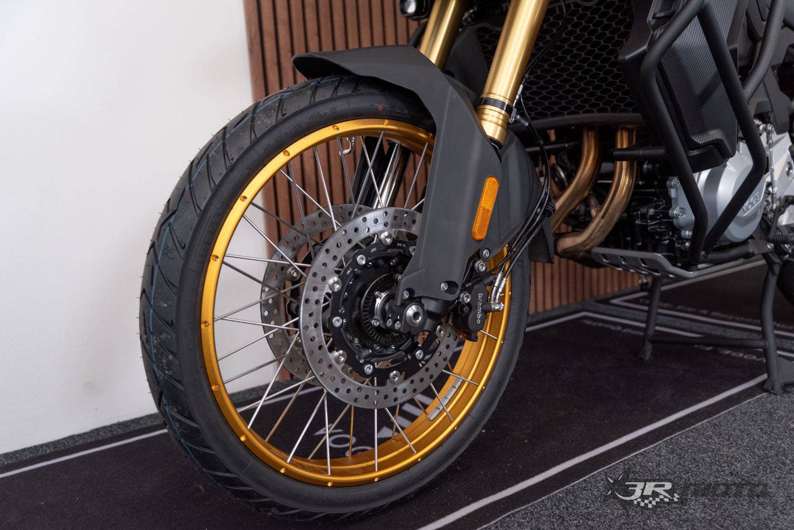 Přední pneu90/90-R21 – bezdušové Pirelli Scorpion Trail II Zadní pneu150/70-R17 – bezdušové Pirelli Scorpion Trail II Přední brzdy2x dvoupístkové třmeny BREMBO, 2× kotouč (ø 305 mm)